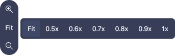 Zoom controls - hovering over the area reveals the zooms controls which allow to adjust how zoomed the device preview should be. You can choose one of the predefined values or use the plus and minus magnifier buttons to adjust the zoom manually.